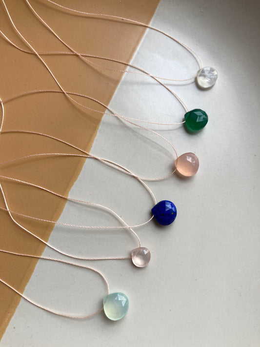 Delicate Cord Necklace - Aqua Blue Chalcedony
