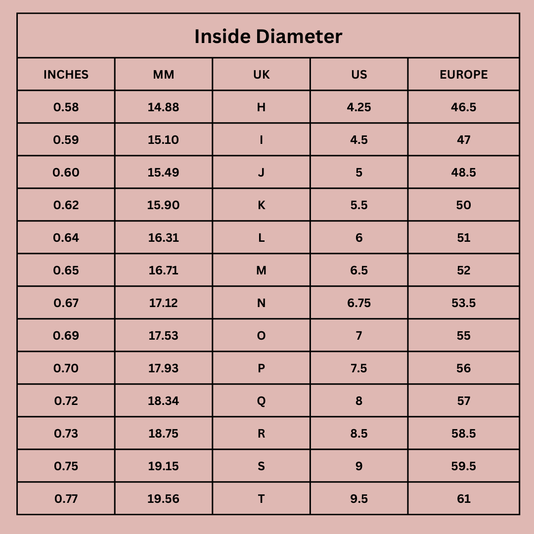 Measure the diameter of one of your existing rings. See the international ring size conversion chart here and provide us with the UK letter size.