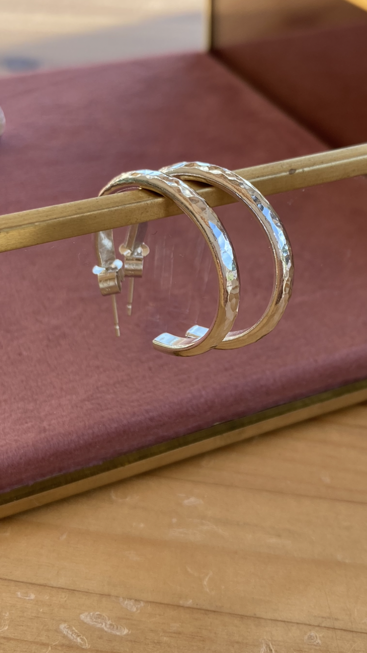 Chunky large hoops handmade from sterling silver. Hammer textured finish. 21mm diameter.
