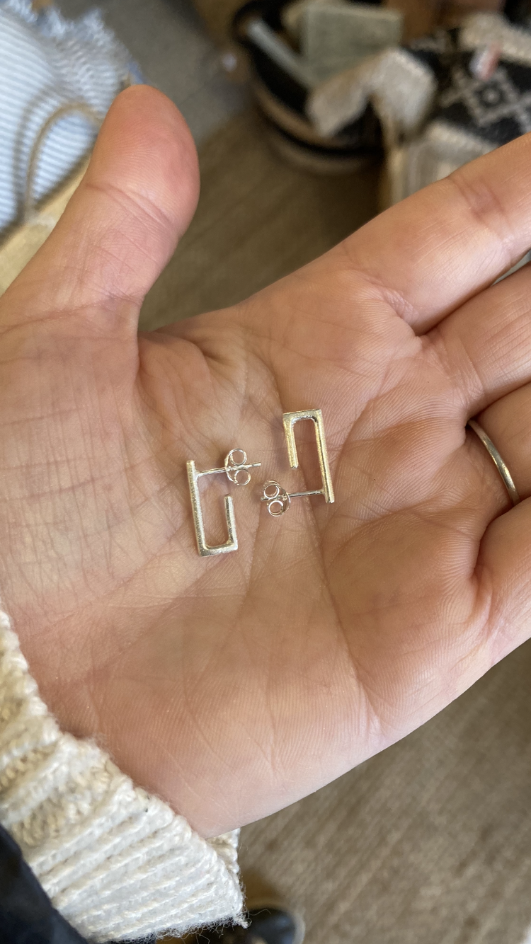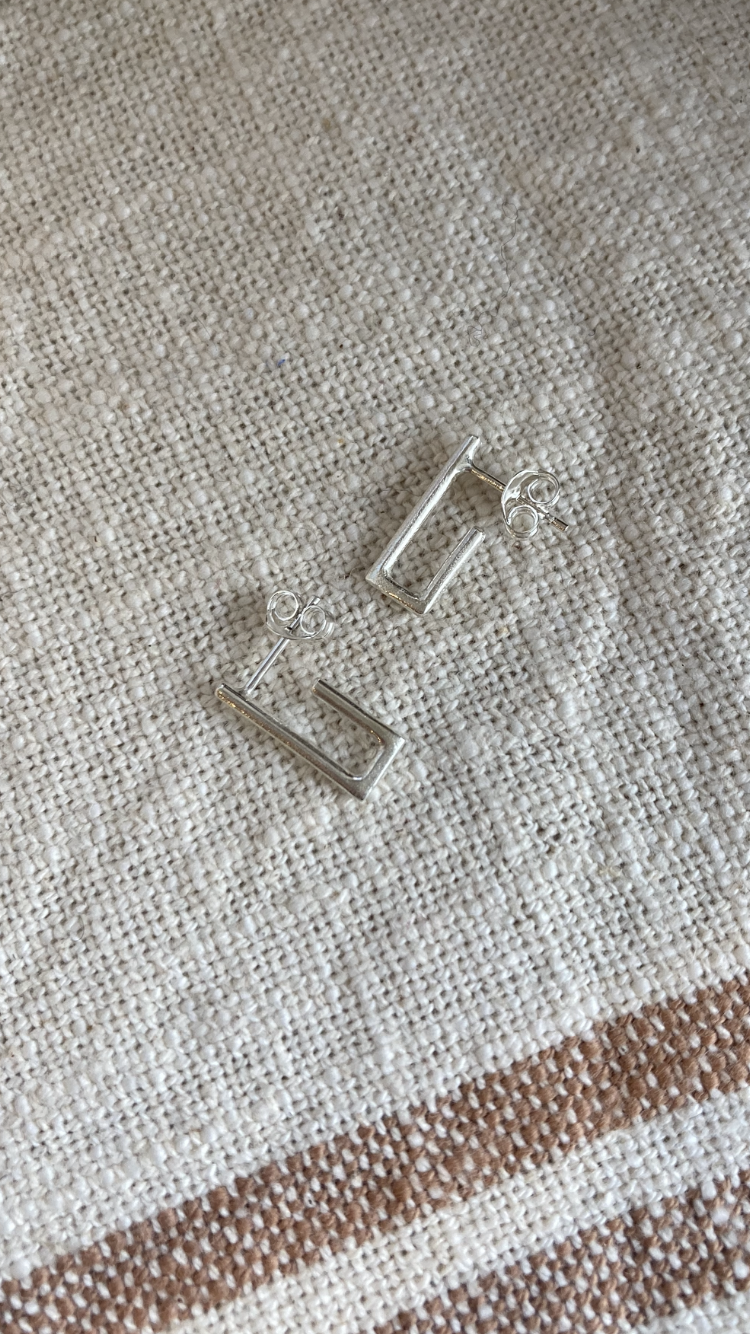 Handmade angular huggie hoops, made from 1.5mm sterling silver wire.
