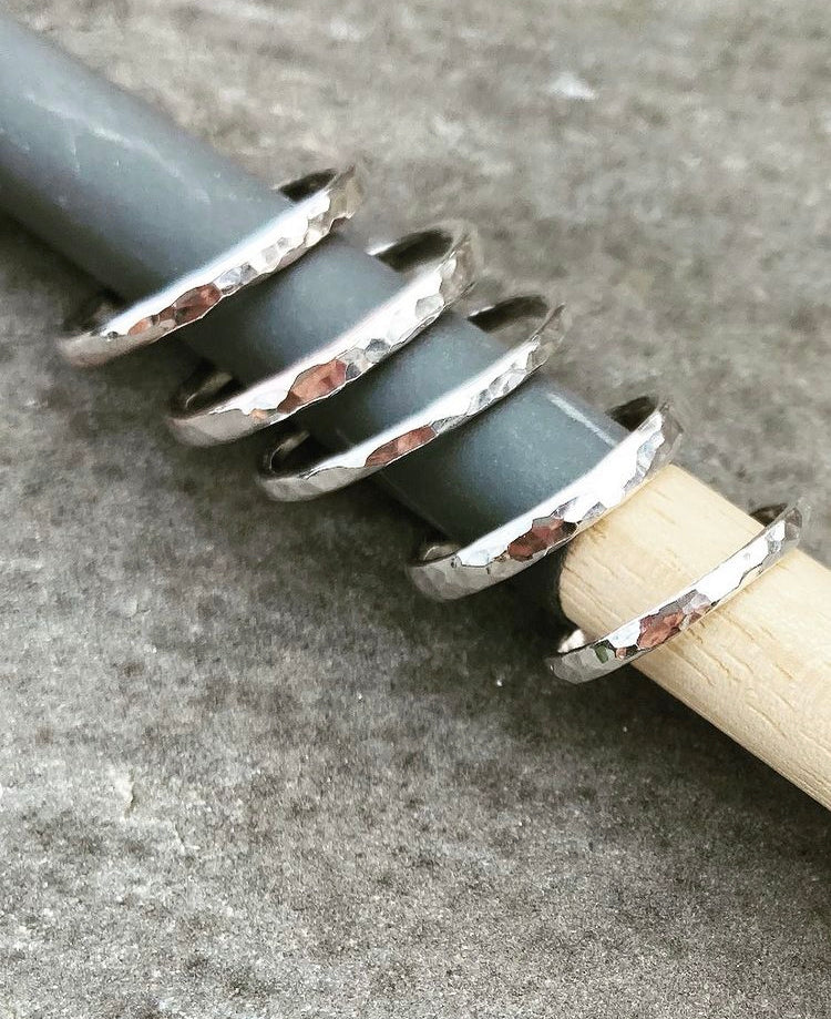 Handmade textured pinkie rings. Sterling silver. 1.5 mm textured band.